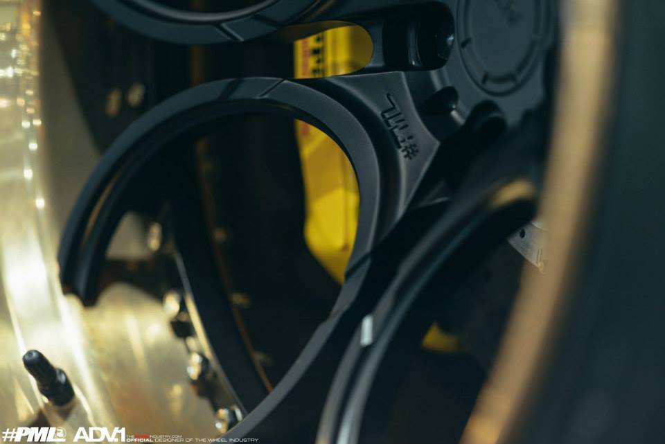 and Matte Black lips. ADV1-branded nuts and yellow Brembo brake calipers
